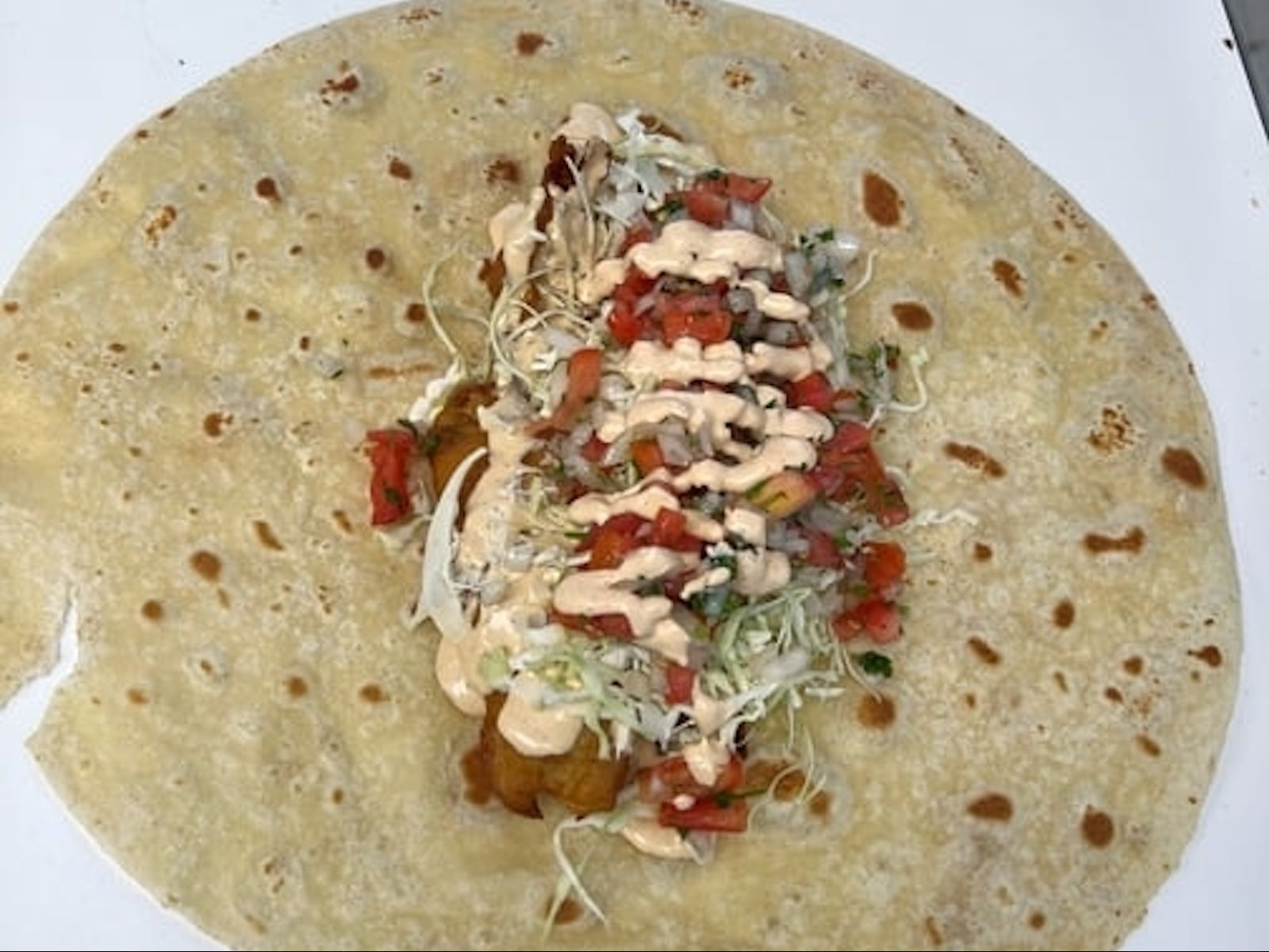 CRISPY-Beer Battered Fish, Baja Sauce, Cabbage, Salsa Fresca(Pico), Lime