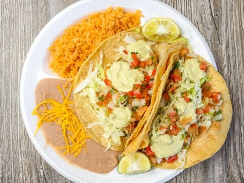 Served with guacamole, salsa fresca, choice of tortillas, rice and beans