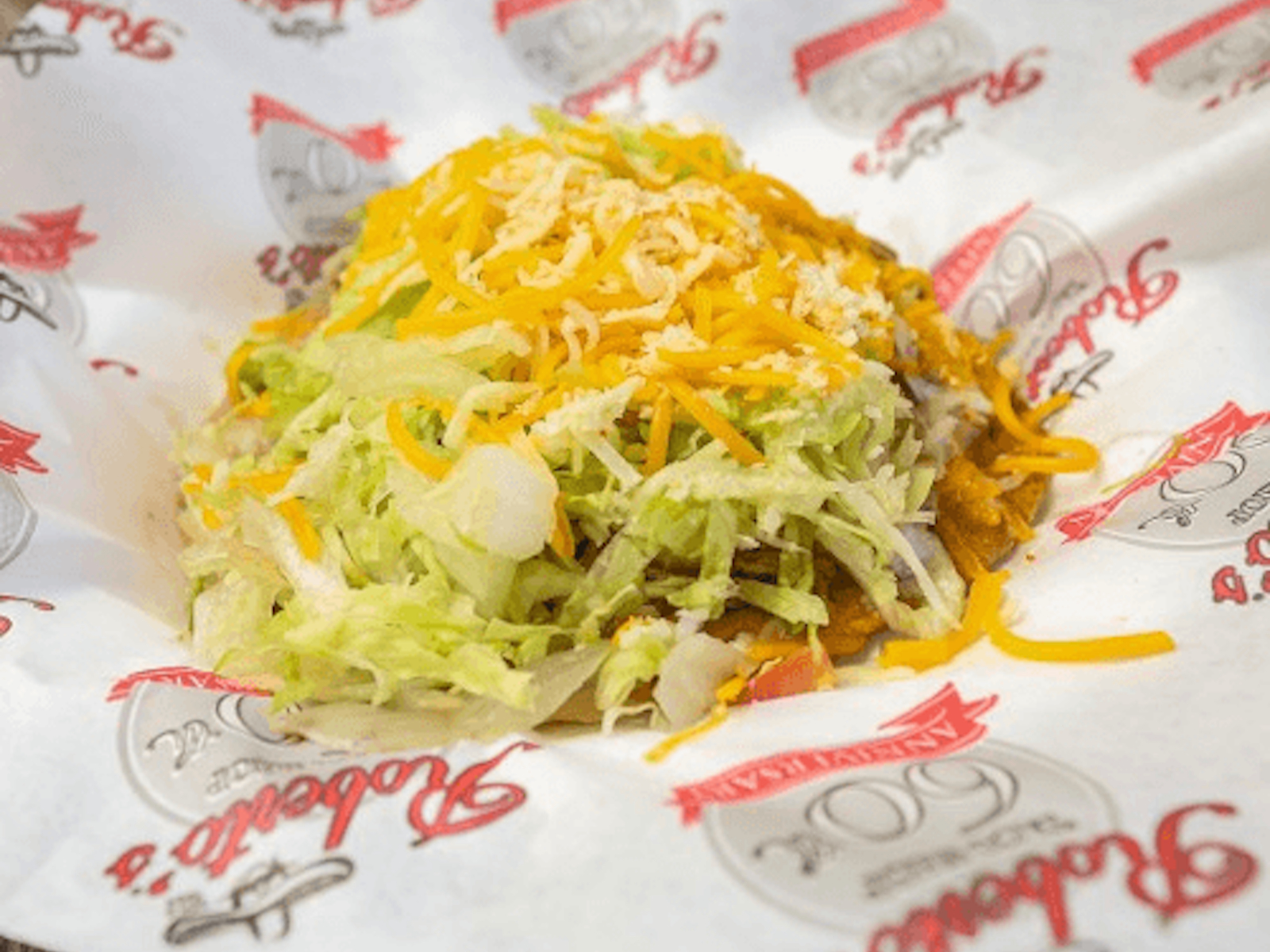 With beans, cheese, salsa fresca, lettuce, cotija