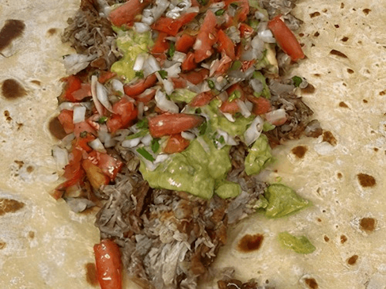6IN. Corn Tortilla, Carnitas, Guacamole & Salsa Fresca(Pico).