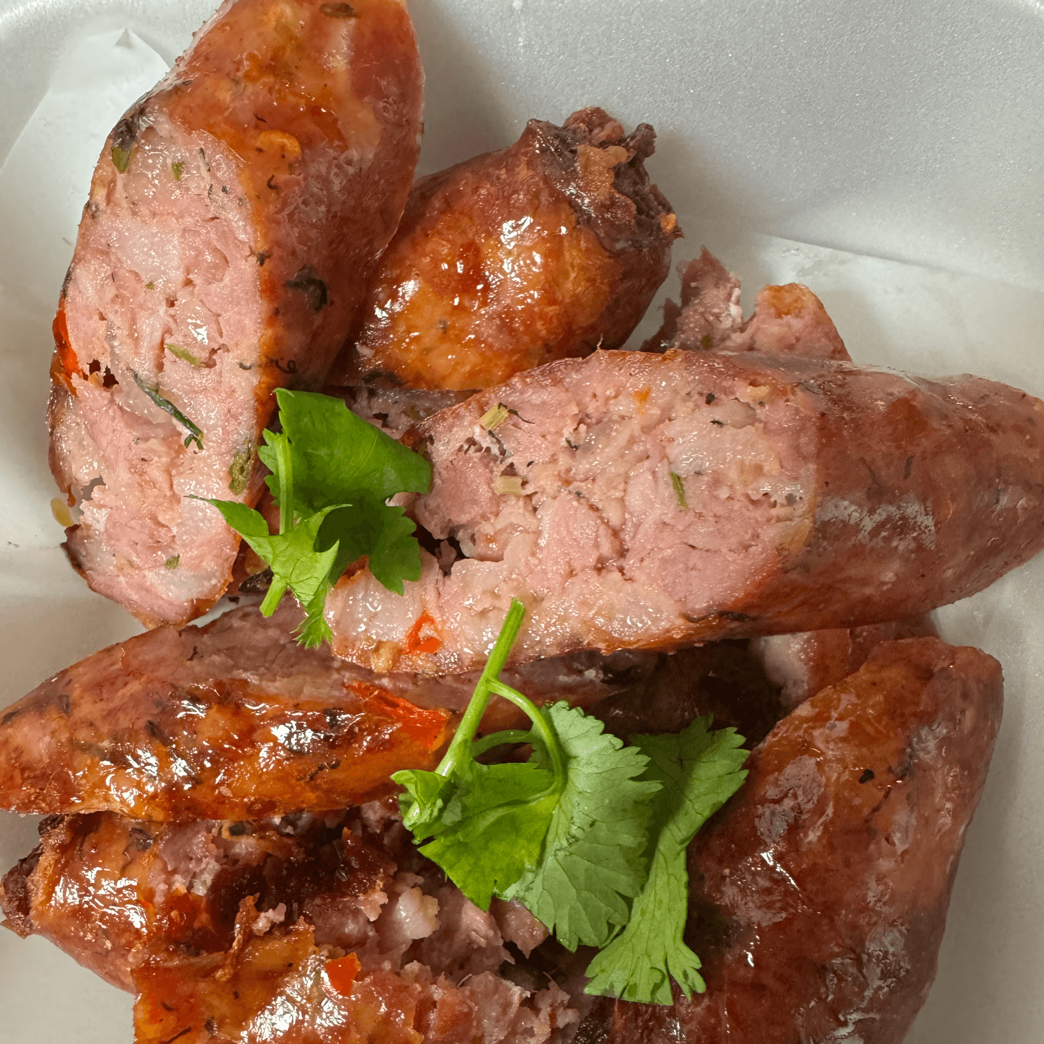 2 pieces. Pork sausage made of Laos traditional herbs and spices.
