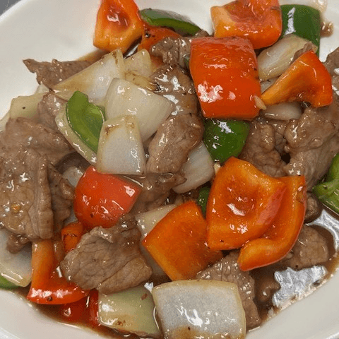 Stir fried with white onions, red and green bell peppers, and sauteed with oyster sauce