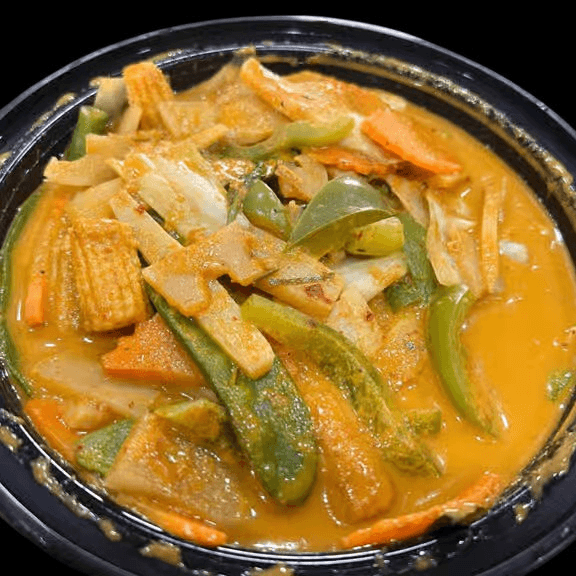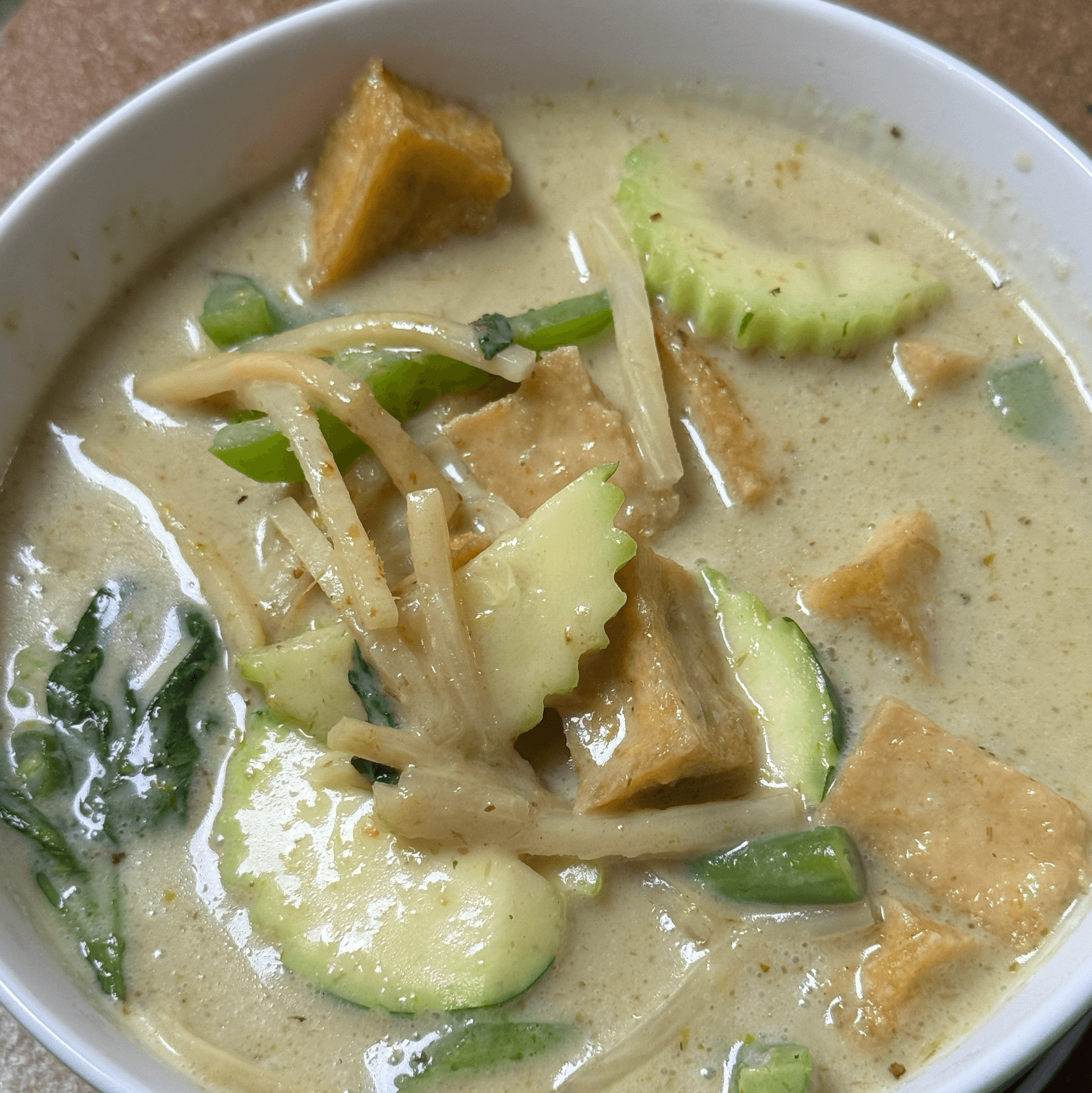 Zucchini, bell pepper. green beans in a panang curry sauce
