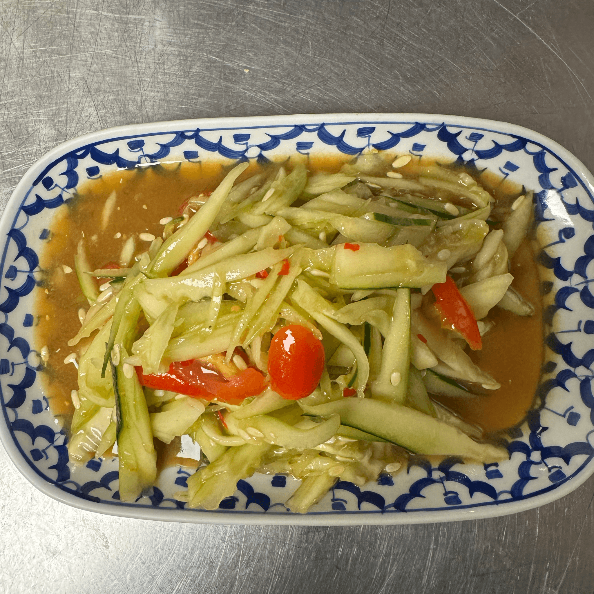 Refreshing cucumber salad with tomatoes, fermented fish sauce and crab paste.