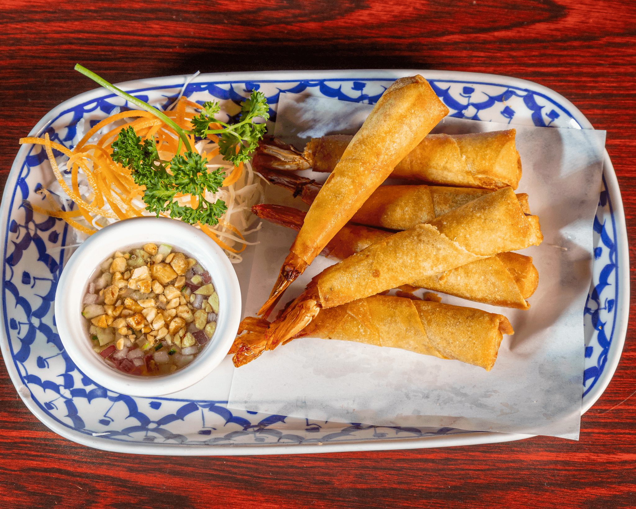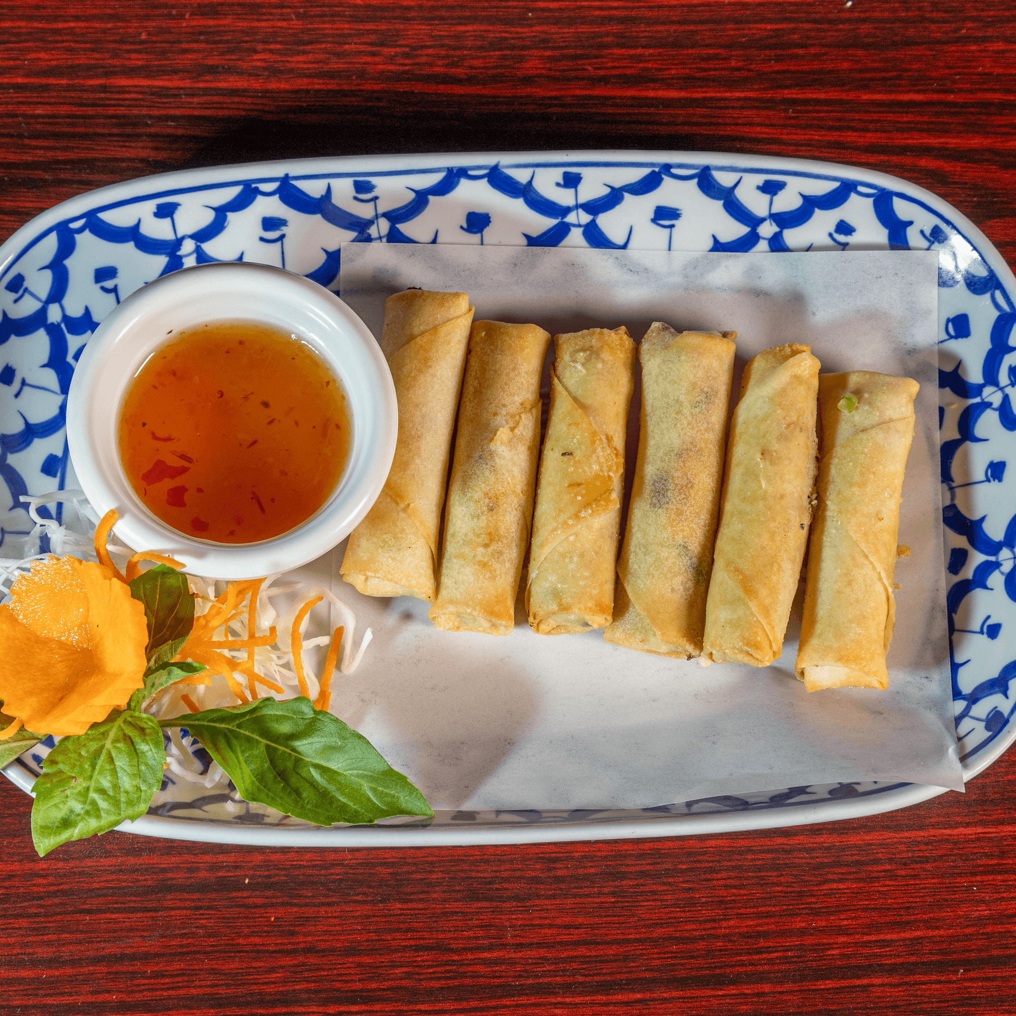 (6) Crispy hand crafted roll filled with cream cheese, Thai chili's and served with our sweet and sour sauce