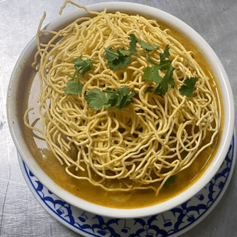 Egg noodles in Thai special curry sauce topped with crispy noodles