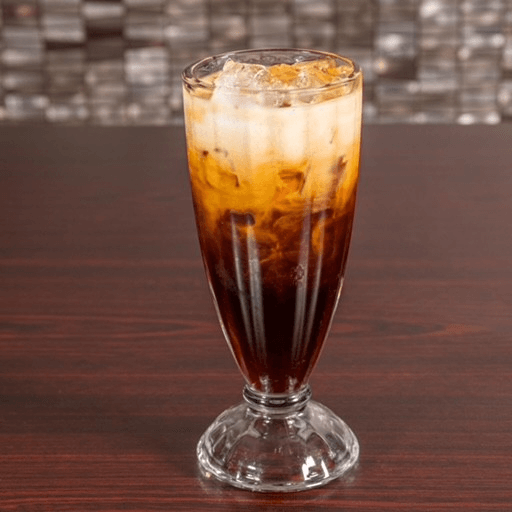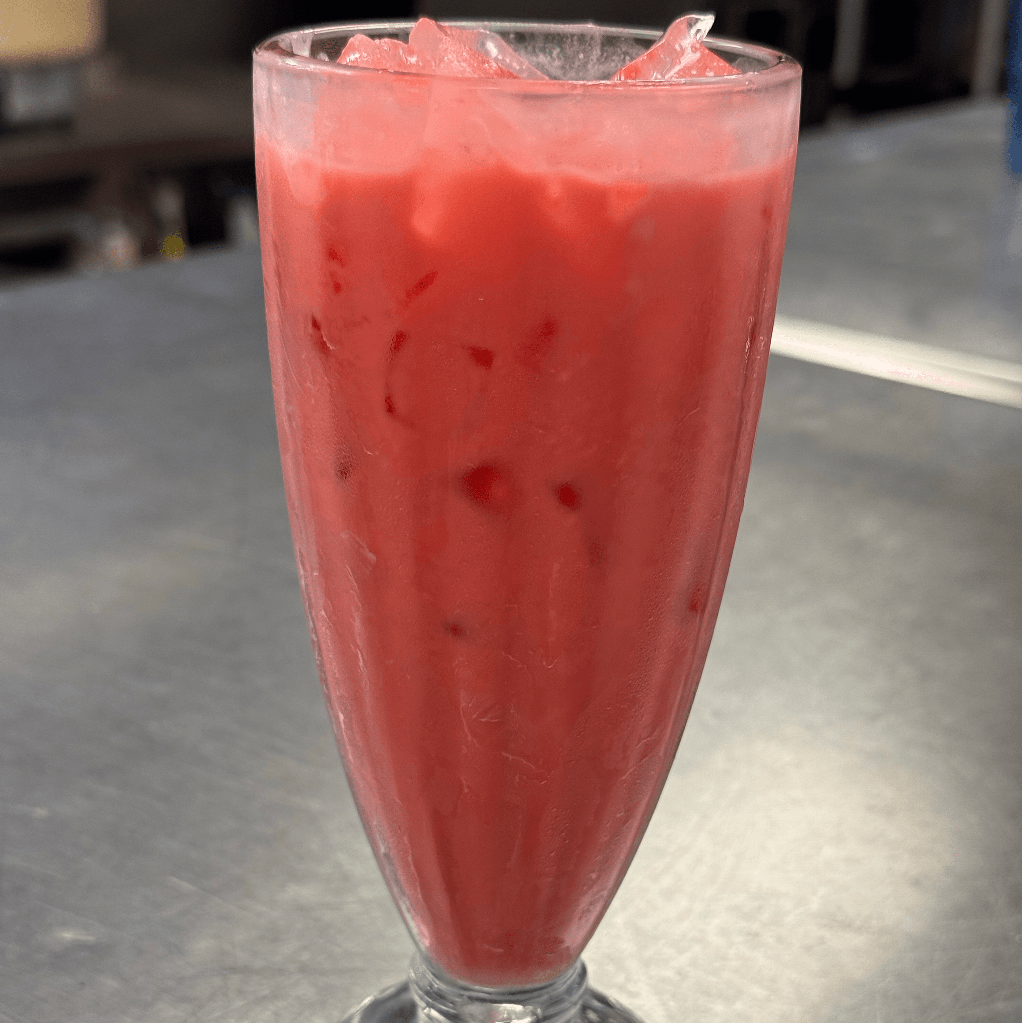 Sweet iced pink drink with coconut milk, condensed milk, and Thai syrup