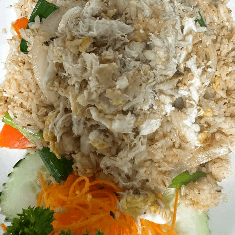 Fresh cracked egg, scrambled with real crab meat, onions, wok-fried rice in our house-made sauce